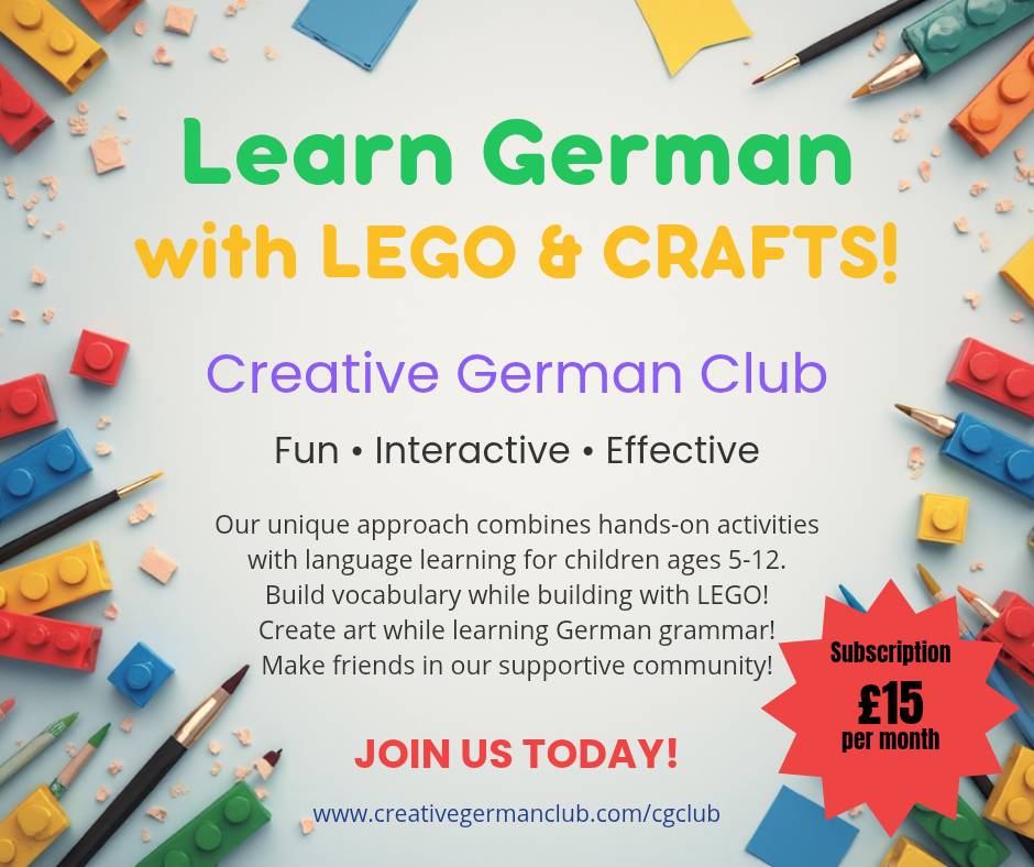 Our Creative German Club is now live! Join one of our two available live lessons – Tuesdays 2PM or Thursday 1015AM – don’t worry if you cannot make the live lessons as recordings are available as and when you need! We follow the A1 European Language Frame. Our subscription costs £15 per month and will remain so for all those that join in the month of April!