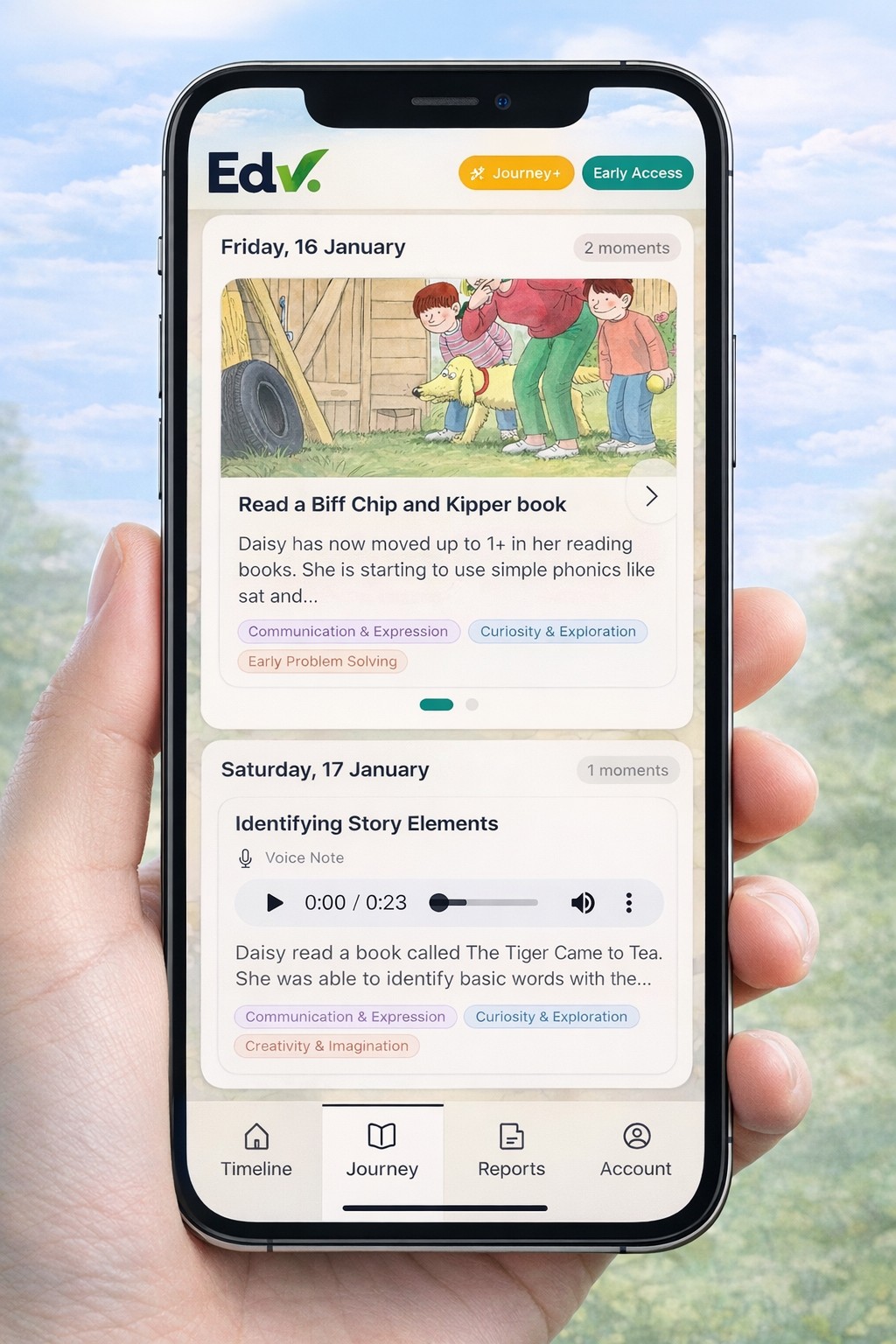 Designed for child led and experience based learning, Edv helps parents turn everyday moments into meaningful learning records without worksheets, grades or pressure.