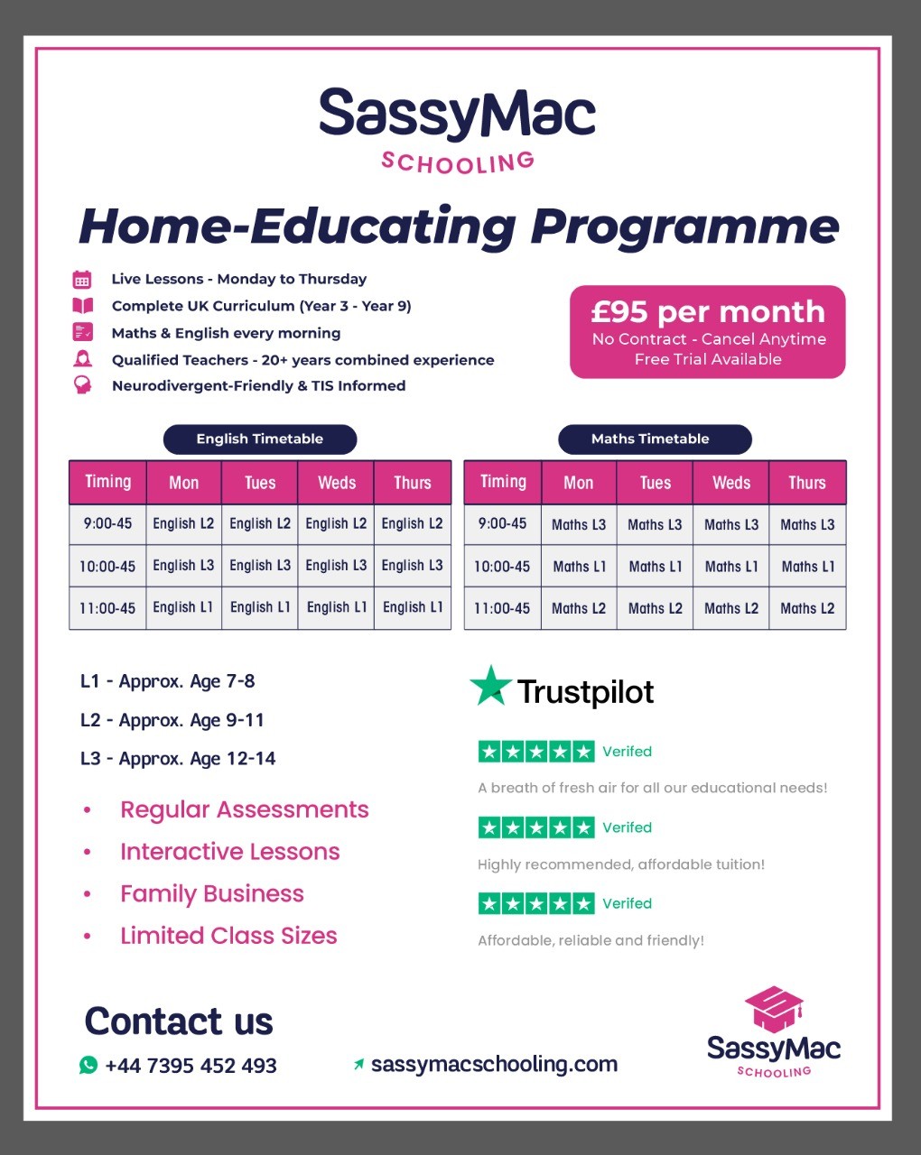At SassyMac Schooling, we provide flexible, high-quality education that bridges the gap between mainstream school and home-learning. Our family-run platform offers a full range of programmes designed to support learners from early years through to GCSE, combining structured teaching, interactive activities, and a warm, inclusive approach.