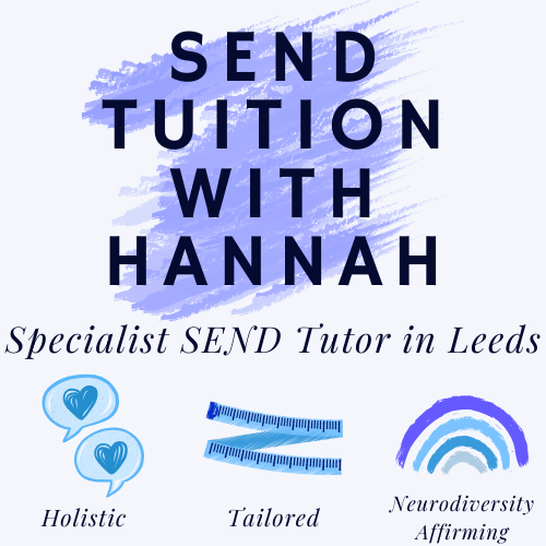If you are searching for a SEND tutor in Leeds who can provide tailored support for your child, get in touch for a free initial consultation – I’d love to hear from you. You can find my website and facebook page by searching SEND Tuition with Hannah 😊