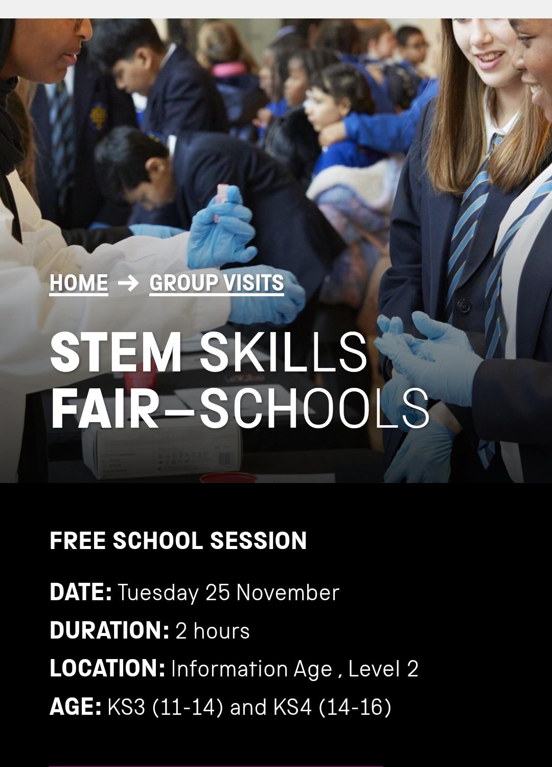 Join us in the museum for our next STEM Skills Fair for KS3 and KS4 on Tuesday 25 November in the Information Age gallery.
