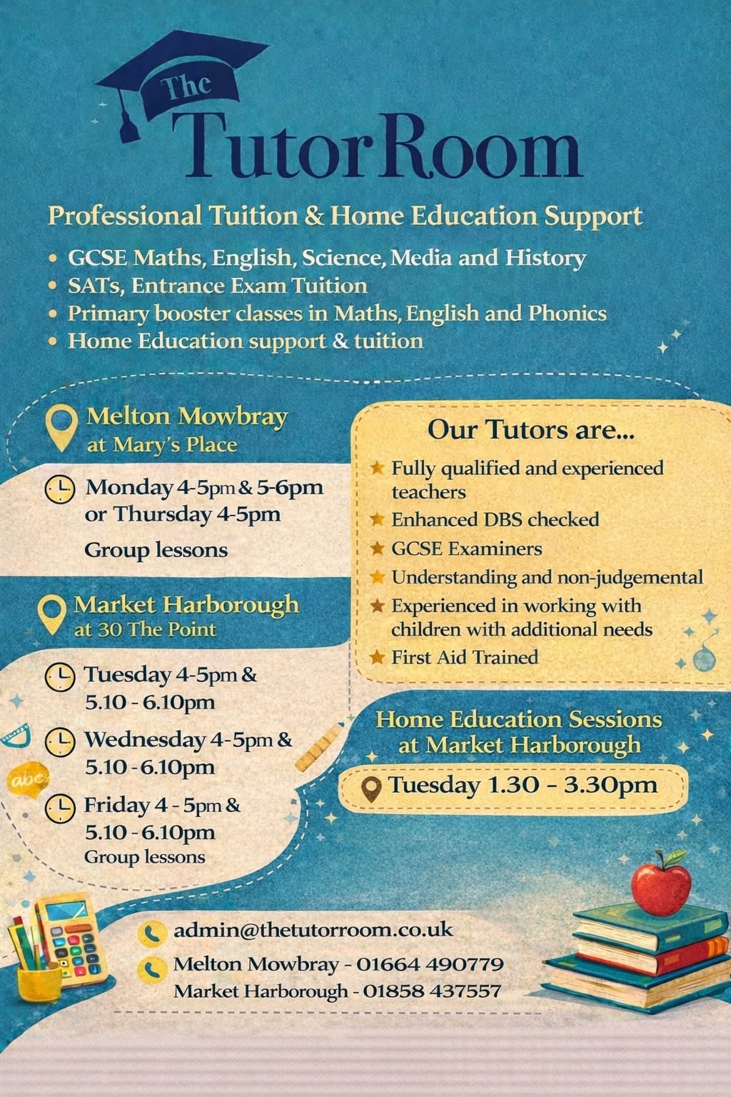 We are The Tutor Room Market Harborough. We are an independent tuition centre with our own bespoke building. We only employ fully qualified teachers with examiner experience and fully enhance DBS checked.